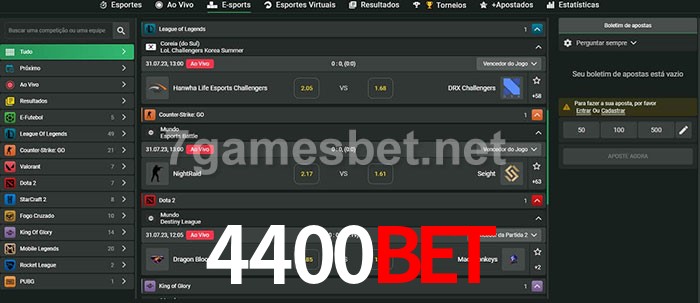 O 4400bet oferece uma grande seleção de opções de apostas em e-sports com probabilidades competitivas